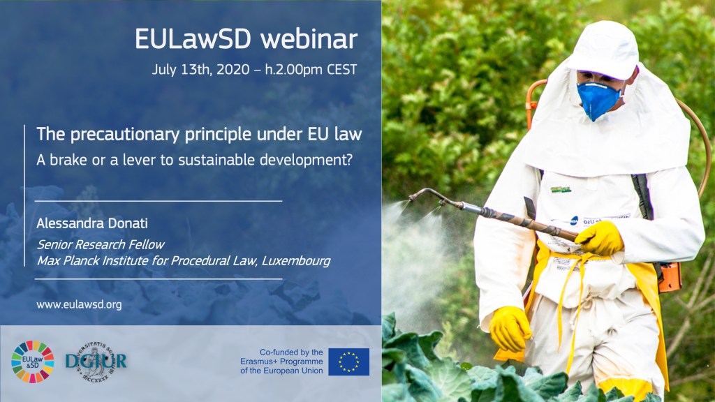 We are pleased to announce a third session of the 2020 EULawSD webinar series, which will take place on 13 July 2020 at 2pm CEST. Alessandra Donati, Senior Research Fellow at the Max Planck Institute Luxembourg for Procedural Law, will join us for a dialogue on ‘The Precautionary Principle Under EU Law: a Brake or a Lever to Sustainable Development?’. The webinar will be visible on EULawSD’s YouTube channel and at this link.